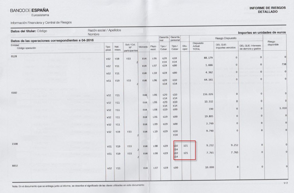 Cómo interpretar los códigos que aparecen en la CIRBE ,